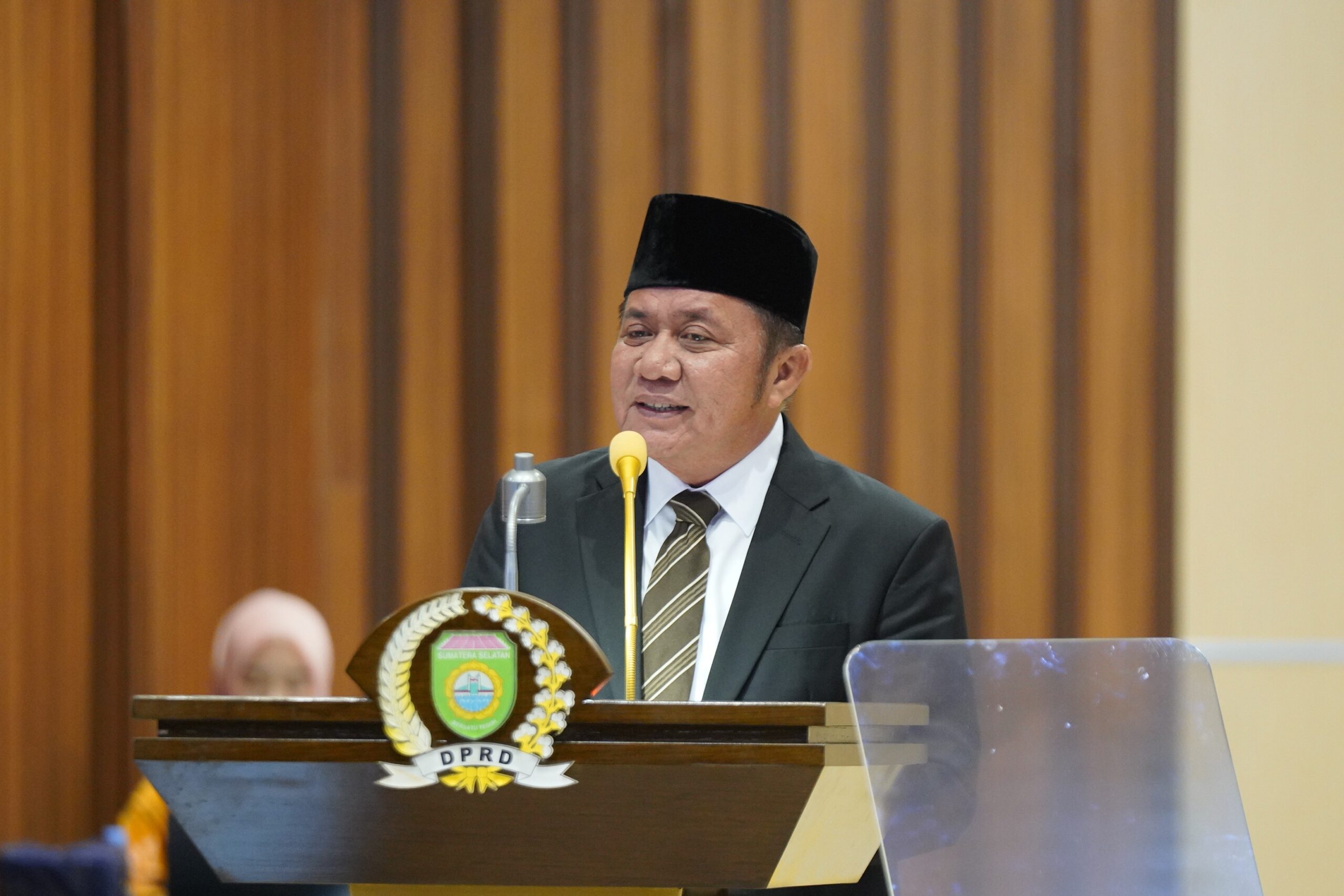 “Sesuai dengan ketentuan pasal 32 ayat (2) huruf b peraturan DPRD Provinsi Sumatera Selatan Nomor 19 tahun 2025 tentang perubahan kedua atas peraturan DPRD Provinsi Sumatera Selatan Nomor 22 tahun 2020 tentang tata tertib DPRD Provinsi Sumatera Selatan, perlu disampaikan pemikiran, pandangan dan tanggapan oleh para anggota dewan yang terhormat dalam bentuk pandangan umum dari fraksi-fraksi DPRD Provinsi Sumatera Selatan. untuk memberikan kesempatan kepada fraksi-fraksi DPRD Provinsi Sumatera Selatan mempersiapkan tanggapan, pandangan dan pendapatnya, maka rapat paripurna XVIII (18) pembicaraan tingkat pertama hari ini saya skors sampai dengan hari senin tanggal 21 Juli 2025 pukul 09.00 WIB. Jelas pimpinan rapat sebelum menskors rapat paripurna