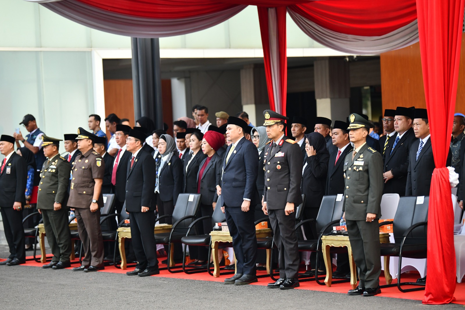 Sekretaris Daerah Drs. H.Edward Chandra, MH. Yang membacakan amanat dari Kepala Badan Pembinaan Ideologi Pancasila (BPIP), menekankan pentingnya nilai-nilai Pancasila sebagai dasar negara dan ideologi bangsa Indonesia.