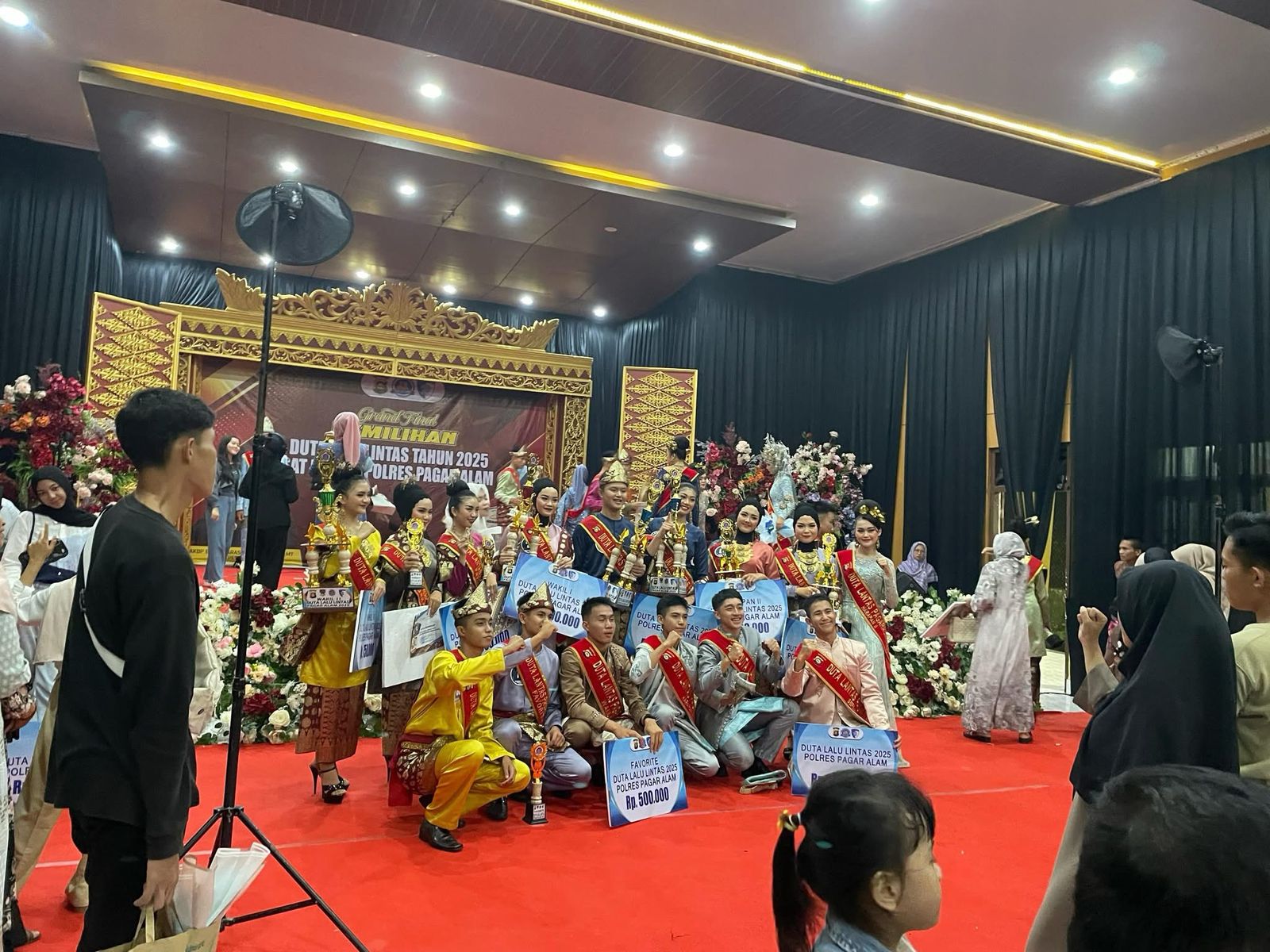 Bertempat di Gedung Balai Kota Pagar Alam, Satuan Lalu Lintas (Satlantas) Polres Pagaralam menggelar Grandfinal Pemilihan Duta Lalu Lintas (Lantas) 2025 yang berlangsung meriah dan penuh antusiasme dari para peserta dan warga masyarakat Kota Pagar Alam.